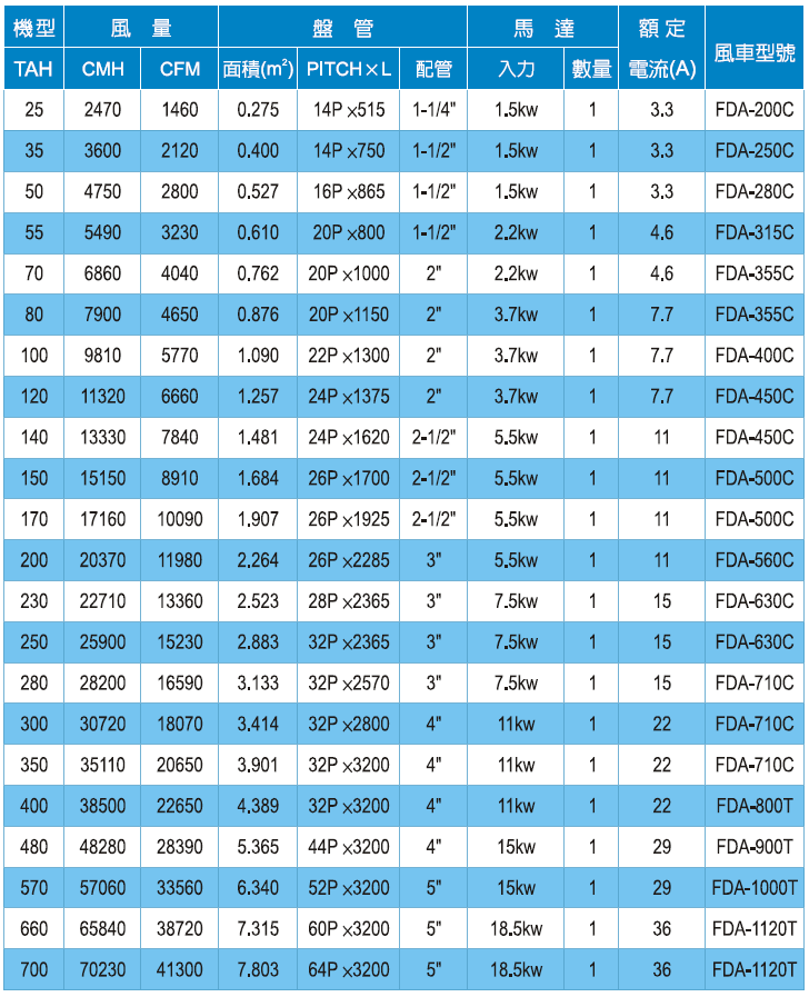 採用歐美進口離心多翼式獨立風車組,並經動力平衡。