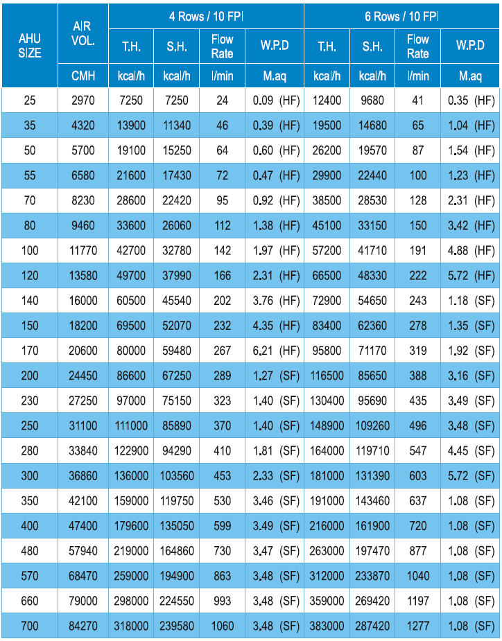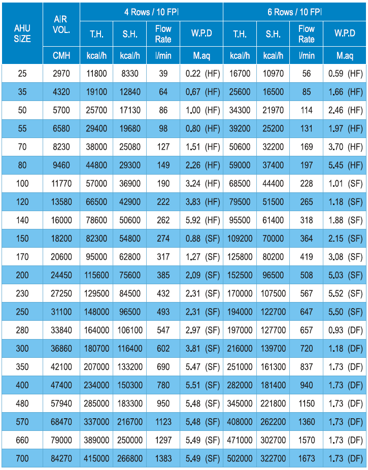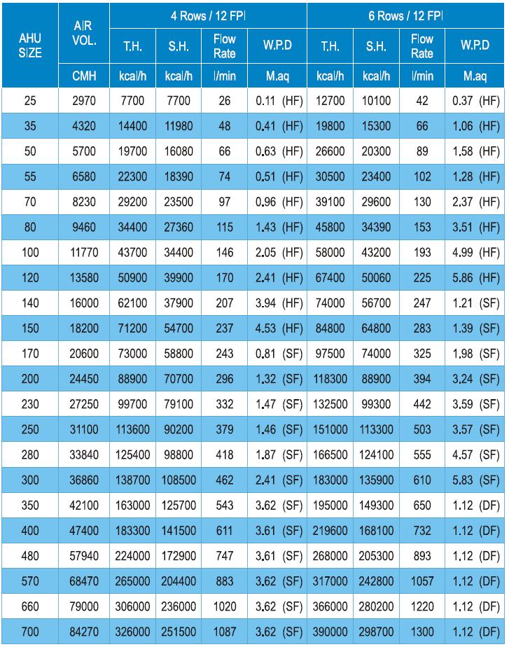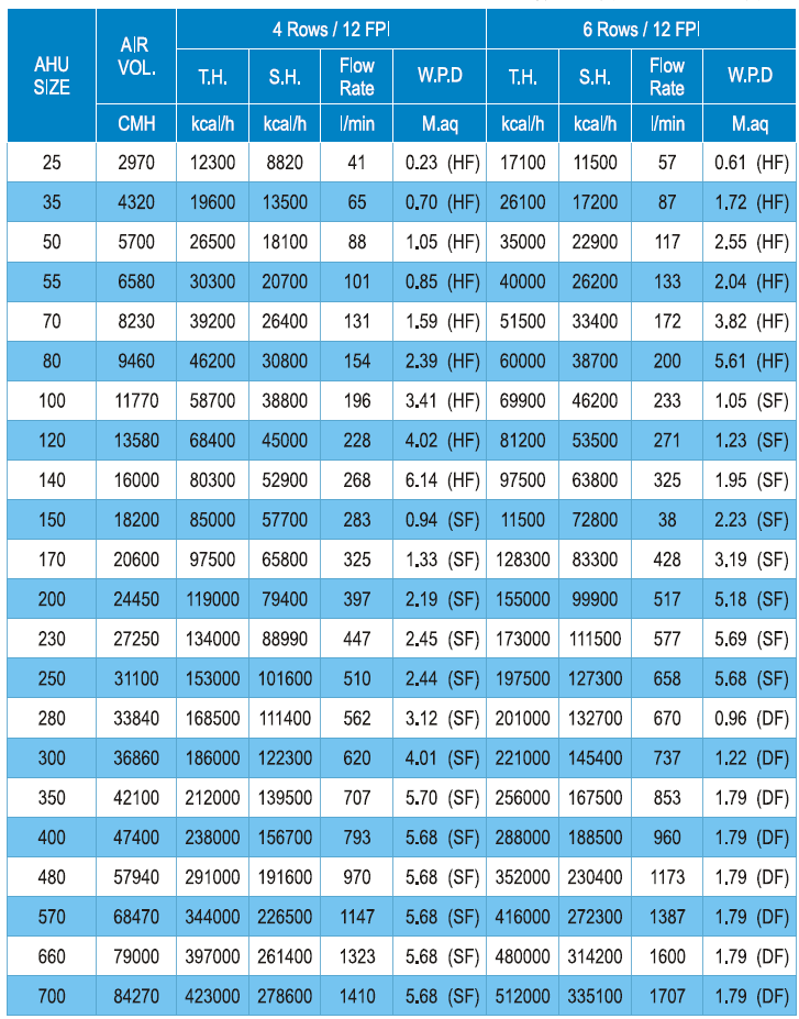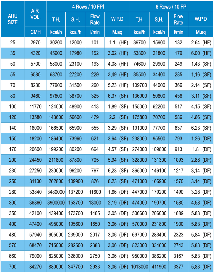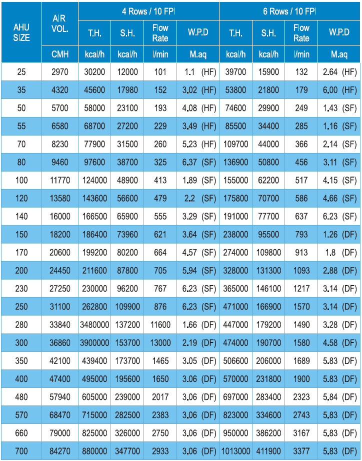 空氣乾球溫度35°C,冷水出口溫度7°C