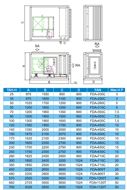 模組化設計,風量從2500CMH到70500CMH可供選擇。