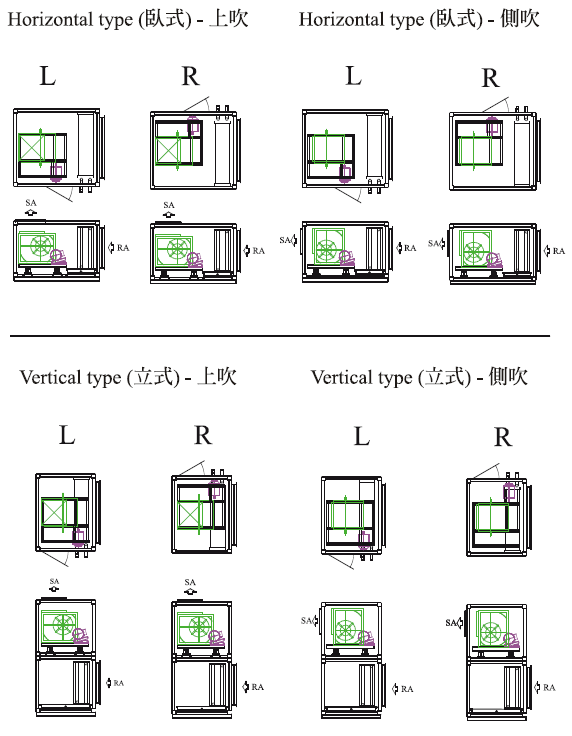 箱體型式有臥式、立式及吊掛式等三種可供選擇。